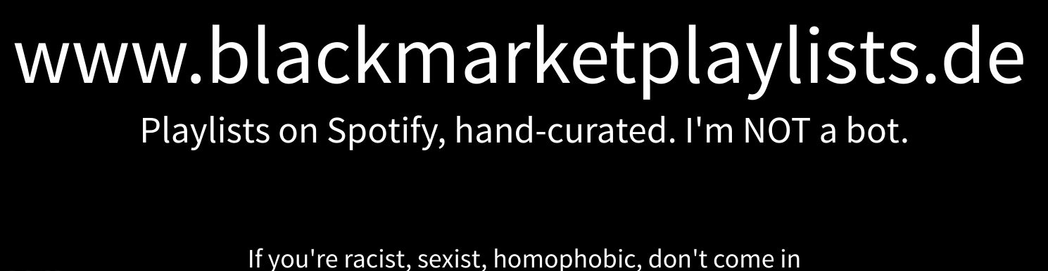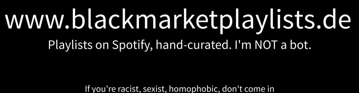 Update April 2025: Good news! All the playlists are now available on DEEZER , Amazon Music, Soundcloud and on YOU TUBE / YOU TUBE MUSIC too, with the same order, same titles, and same cover photos. (Big thanks to tunemymusic!) These playlists will automatically sync once daily. You can find them all on DEEZER , Soundcloud and Amazon Music under my profile name, blackmarketplaylists.de, and on YOU TUBE under my name blackmarket playlists. You Tube Music here!